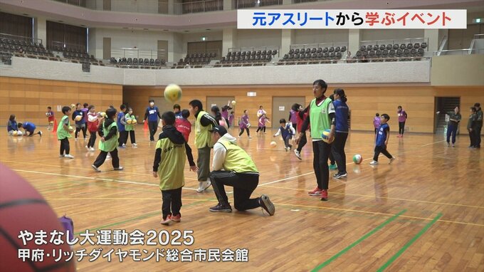 萩原智子さんや鈴木徹さんら山梨にゆかりのある元トップアスリートから、子どもたちが走り方や泳ぎ方のコツを学ぶイベントが山梨県甲府市で行われました。