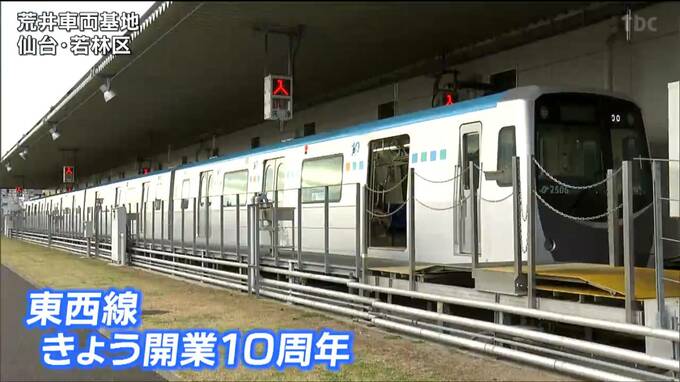 仙台市地下鉄東西線の開業10周年を記念した特別列車がお目見えし、訪れた親子が記念撮影を楽しみました。