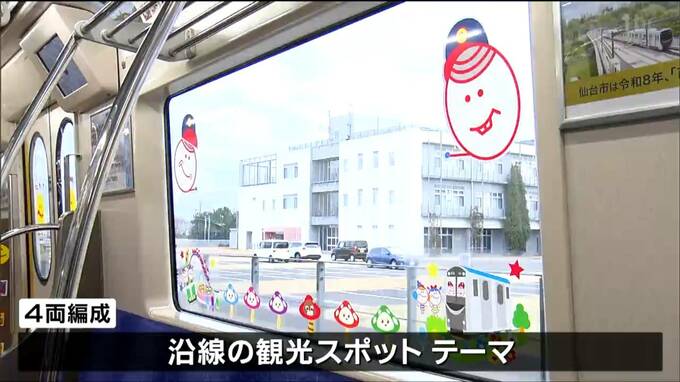 仙台うみの杜水族館をテーマにした車両では、窓にペンギンやアシカなど人気の生き物たちがデザインされています。若林区の荒井車両基地では、招待された親子137人が車内を見学しながら記念撮影を楽しんでいました。