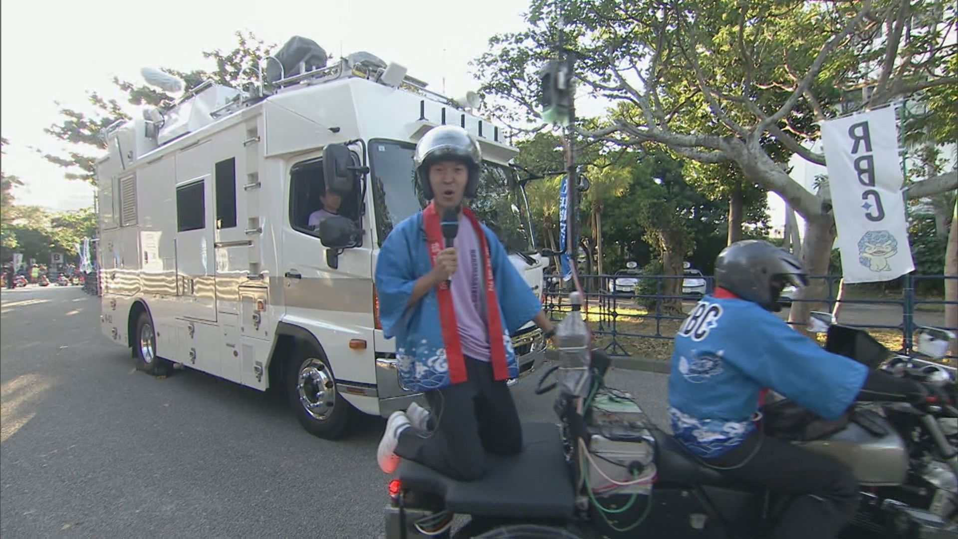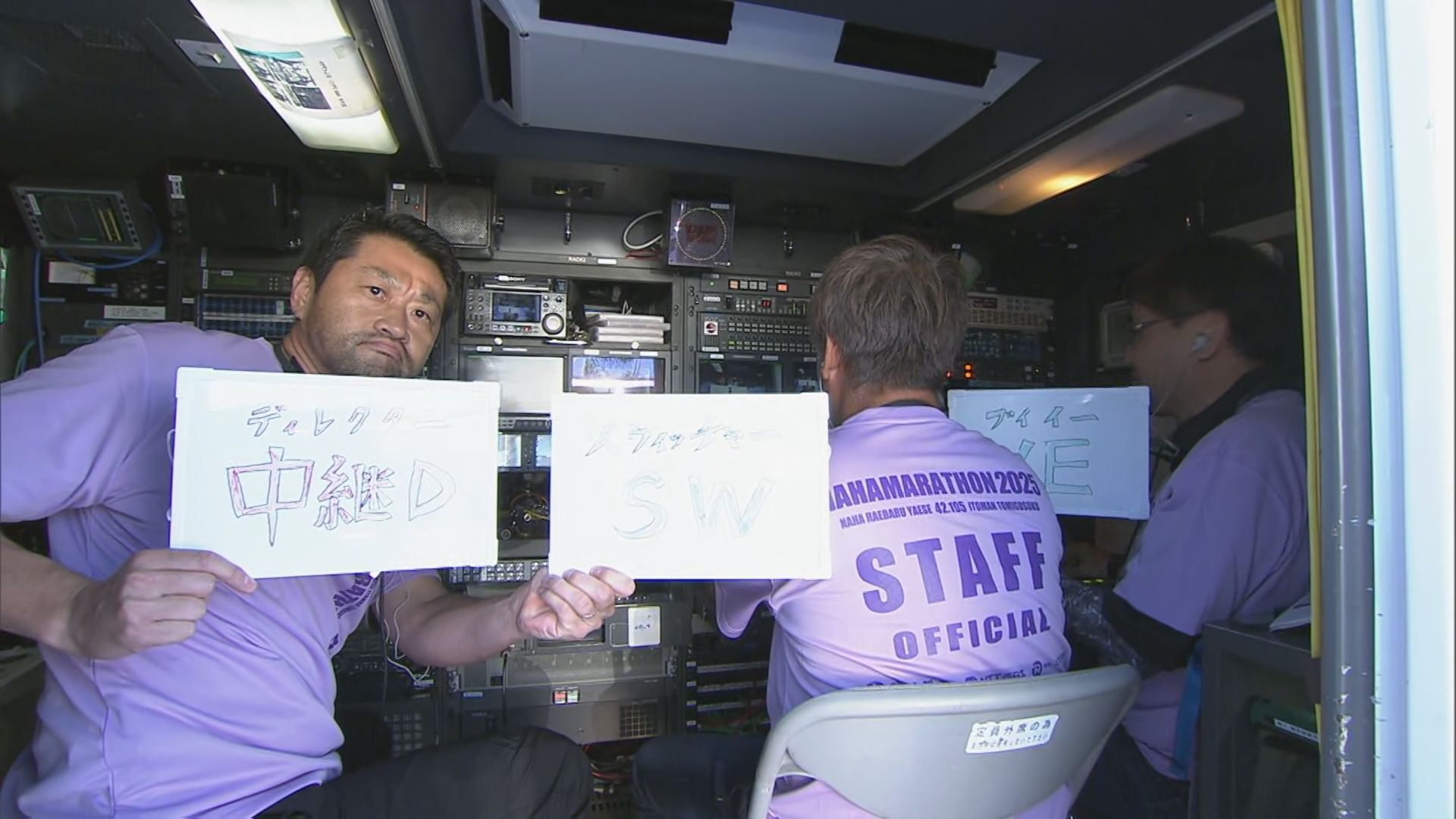 各地にカメラを設置し、ジョガーの力走をお届けしているNAHAマラソン。普段は見られない、中継車の内部を少しだけご紹介!