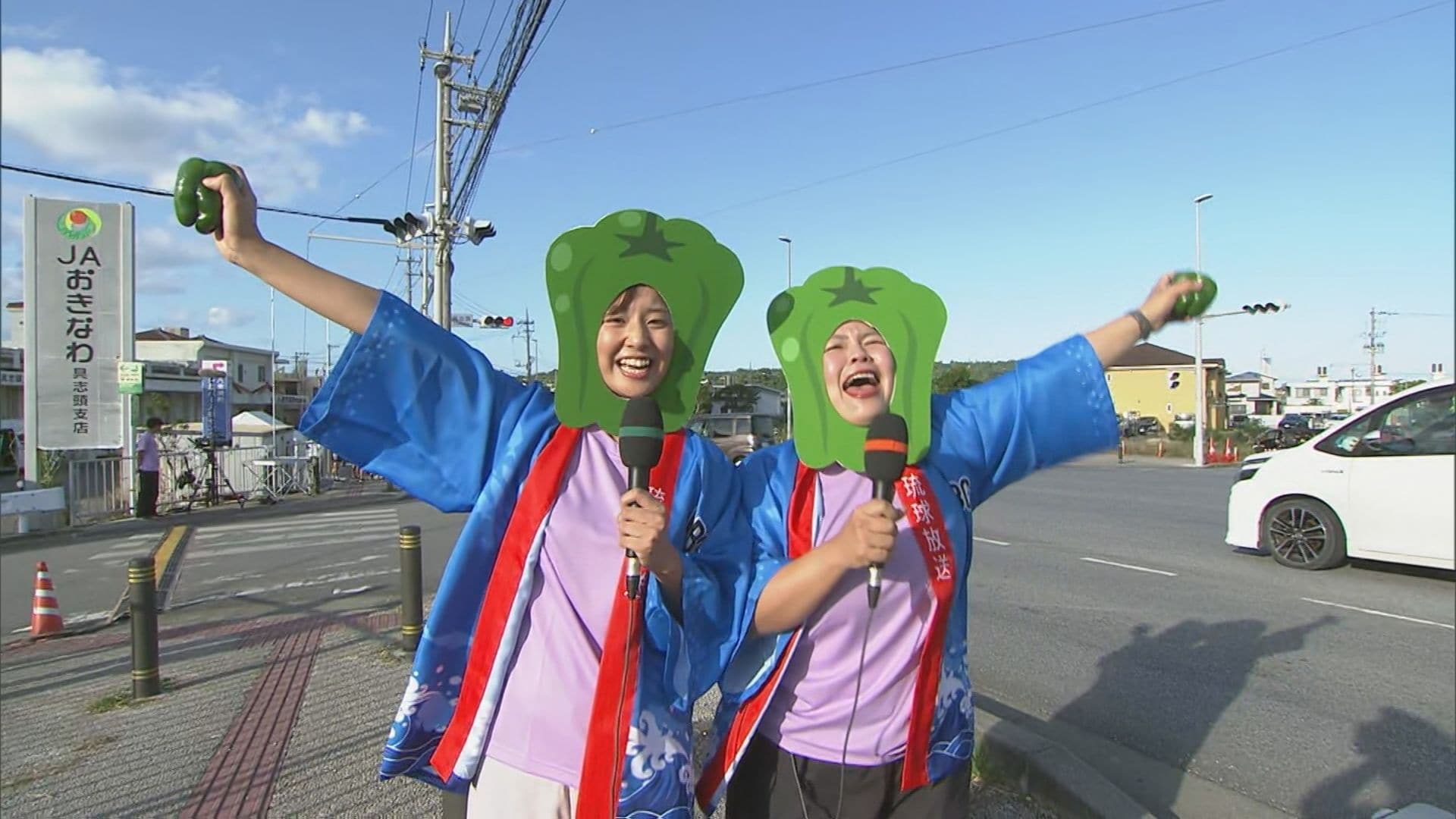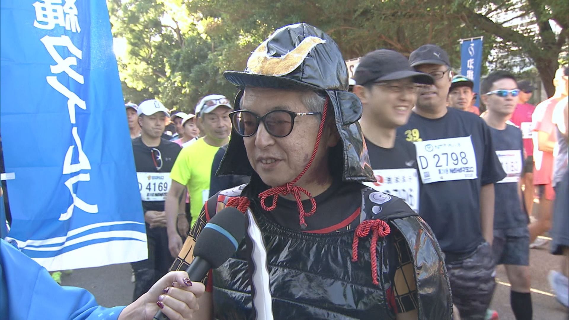 市民ランナー、ジョガーの多くは八重瀬町に入り、具志頭交差点に向かっています。ます。コースの左右にサトウキビ畑が広がる沖縄ならではの風景、そして今年も様々な「コスプレランナー」たちがNAHAマラソンを盛り上げています。
