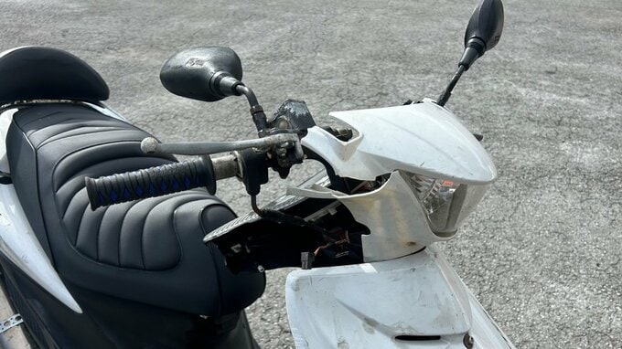 オートバイは県道上で中央線をはみ出し、対向車の側面に衝突して転倒。その後、後続の対向車と衝突したという。