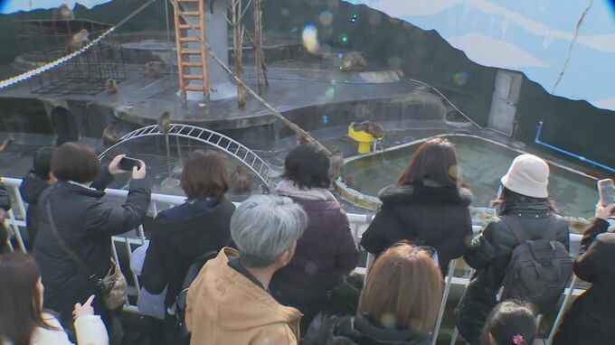 北海道函館市の冬の風物詩「サル山温泉」が今月から始まり、大勢の見物客でにぎわっています。