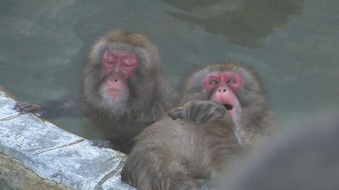 「サル山温泉」は寒さが和らぐ来年5月上旬まで見ることができます。