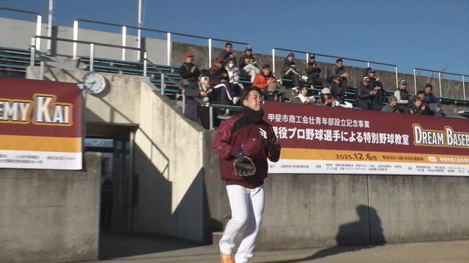 プロ野球楽天ゴールデンイーグルスの現役選手よる野球教室が、山梨県甲斐市で開かれました。