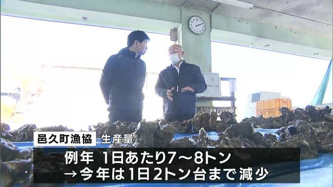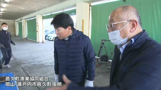 伊原木知事が訪れたのは、瀬戸内市の邑久町漁協です。この地区のカキは、今シーズン、「2、3年もの」が9割以上死んでいるほか、「1年もの」も5割以上が死滅しています。