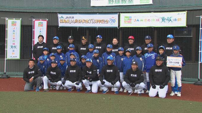 この野球教室は福島県JA共済事業70周年を記念して、JA共済連福島などが開いたもので、県内の少年野球チームの小学生およそ130人が参加しました。