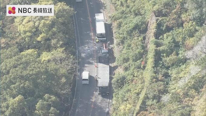 7日午前、長崎県雲仙市の国道でサッカークラブの中学生らを乗せたマイクロバスと軽乗用車が衝突する事故があり、3人が病院に搬送されました。