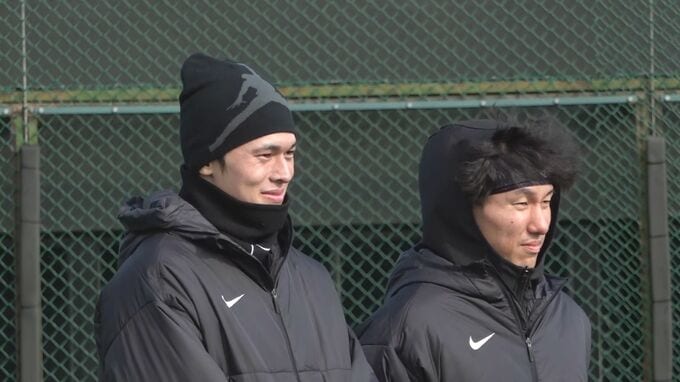 珠洲市営野球場に訪れたのはロサンゼルスドジャースの佐々木朗希投手と千葉ロッテマリーンズの高野脩汰投手。
