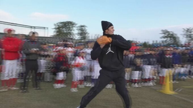 東日本大震災で大切な家族を失った佐々木投手たっての思いで能登の子どもたちに野球を通して元気を届けようと開催された「能登復興支援野球教室」。
