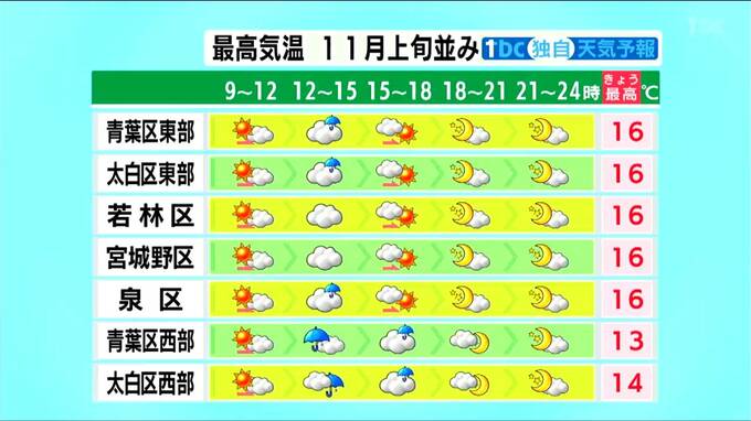・仙台16℃・名取16℃・亘理16℃