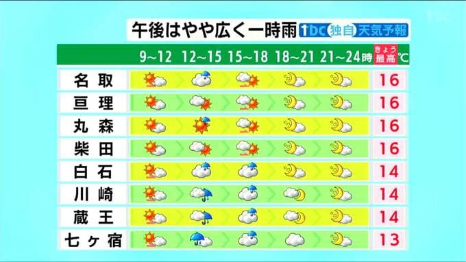 ・川崎14℃・蔵王14℃・七ヶ宿13℃