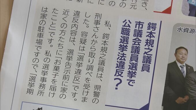 鍔本市議は自身が発行する広報紙で警察の事情聴取を受けたことを明かし、「選挙で騒がしくなるため、『ご迷惑をおかけします』という趣旨で渡した」と釈明。12月9日の市議会でこの件について説明すると話しています。