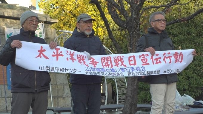 街頭活動は多くの人が犠牲になった太平洋戦争の開戦日に合わせて、「山梨護憲の集い実行委員会」が毎年行っています。