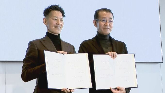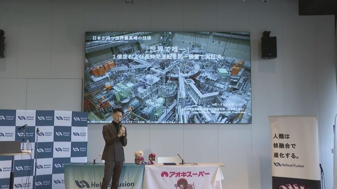 購入側のアオキスーパーと、販売側でフュージョンエネルギーの実用化を目指すスタートアップ企業「Helical Fusion(ヘリカルフュージョン)」が、8日名古屋・昭和区のSTATION Aiで締結式を行いました。