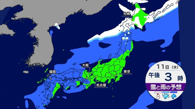 あす以降も日本海側で雨や雪が降り、太平洋側では晴れる冬の天気傾向が続きます。木曜日は西日本で雨が降り、この雨のあとは列島上空に強い寒気が流れ込むでしょう。この影響で金曜日以降は日本海側で雪の量が増え、各地で一段と寒くなります。東京は土曜日の午後から日曜日は冷たい雨になる見込みです。