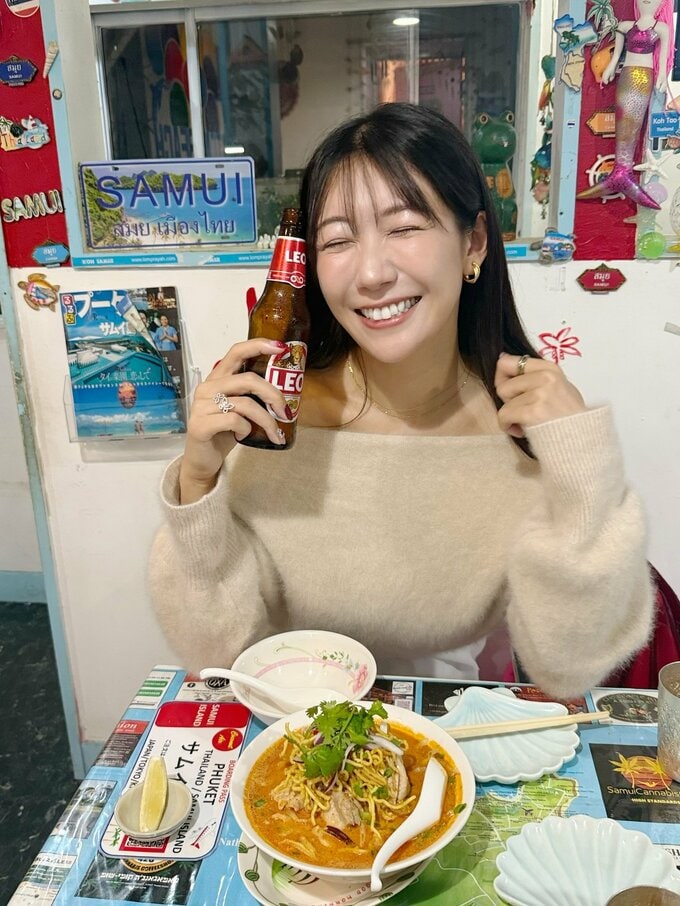 穂川さんは「おやおや、もうすぐ週末が終わってしまいますねぇ ということでタイビール投稿」とコメントし、タイ料理店での様子やタイビールの写真などを複数枚投稿 。
