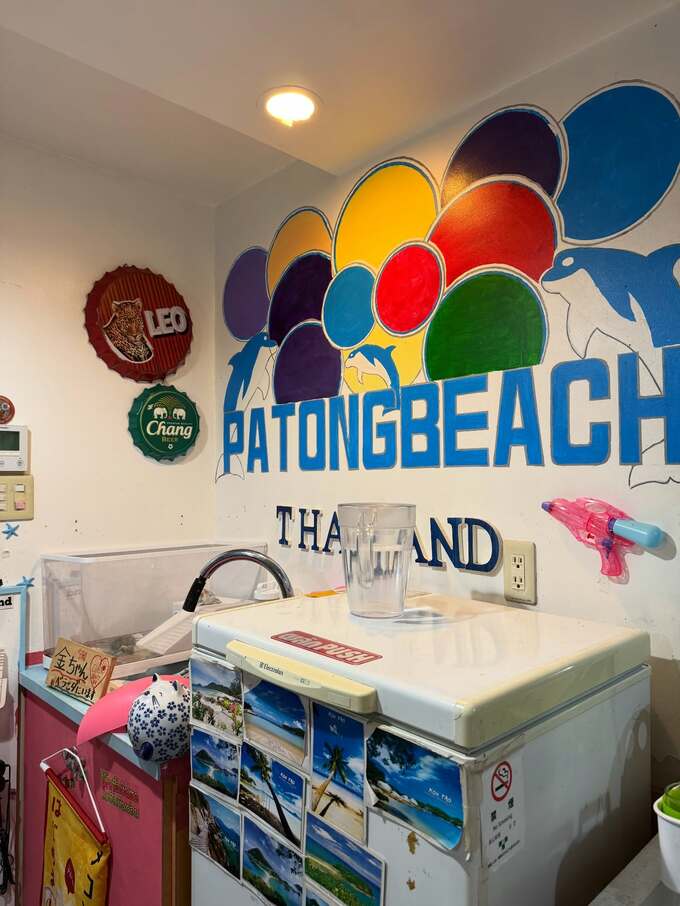 壁にはタイのビーチや観光地をモチーフにしたカラフルな装飾が施されており 、まるでタイ旅行気分を味わえるような空間で過ごしたようです。