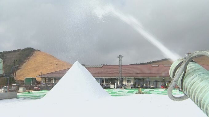 標高1150メートルに位置するくじゅう森林公園スキー場では12月12日のシーズン幕開けを前に雪づくりが大詰めを迎えています。