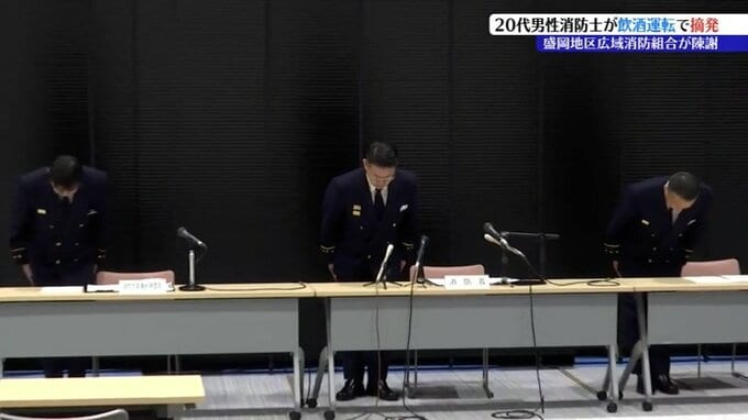 6日、盛岡地区広域消防組合に所属する20代の男性消防士が職場の懇親会で飲酒したあと自家用車を運転したとして、警察に摘発されました。消防組合は8日午後に記者会見し、陳謝しました。酒気帯び運転の疑いで摘発さ…