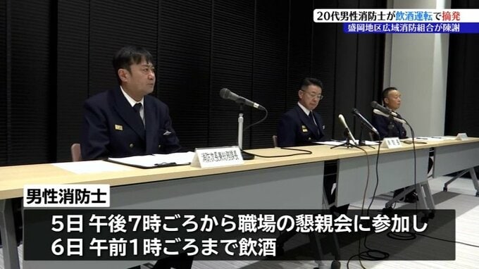 6日、盛岡地区広域消防組合に所属する20代の男性消防士が職場の懇親会で飲酒したあと自家用車を運転したとして、警察に摘発されました。