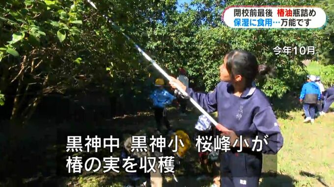 今年度で閉校が決まっている桜島の黒神中学校で、閉校前、最後となる手作りの椿油の商品が完成しました。