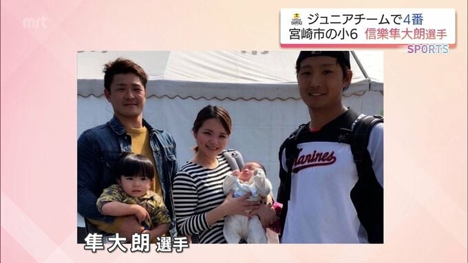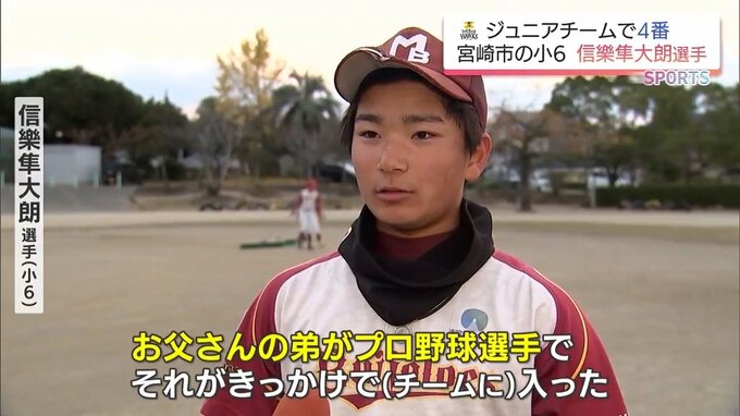 信樂選手の叔父は、宮崎梅田学園から千葉ロッテに入団した投手、信樂晃史さん。晃史さんが開講しているスクールにも通い、メキメキと実力を付けました。