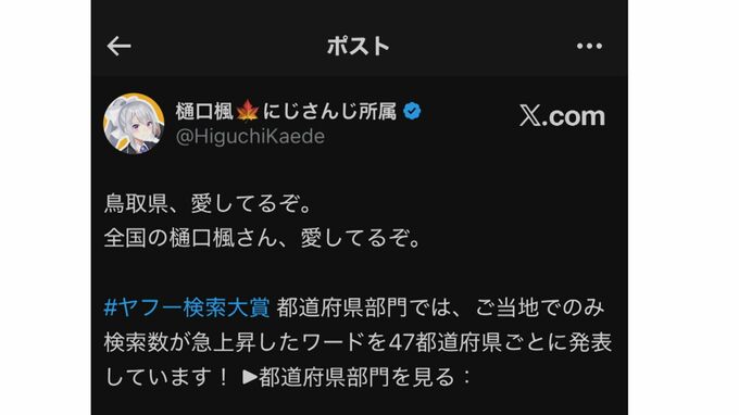 「鳥取県、愛してるぞ。全国の樋口楓さん、愛してるぞ」