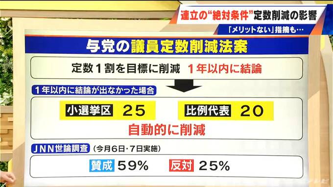 もし「この1年で結論が出なかった場合どうなるのか?」というと、小選挙区で25議席、比例代表で20議席が自動的に削減させるので、私が取材した議員は、「自動発火装置的な法案」と例えていました。