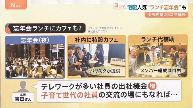 広報の吉田さんは狙いについて、「テレワークが多い社員の出社機会が増え、子育て世代の社員の交流の場にもなれば…」としています。