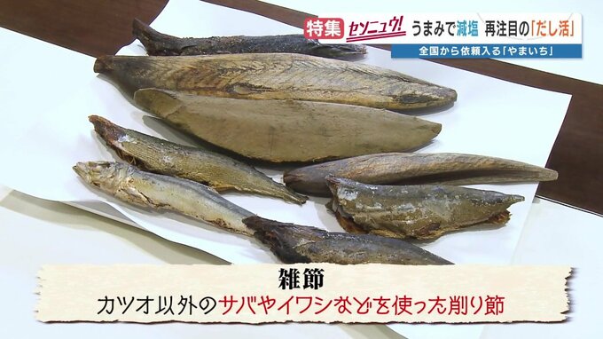 雑節とは、カツオ以外の、サバやイワシなどを使った削り節のこと。熊本・牛深は、その雑節の生産量日本一です。