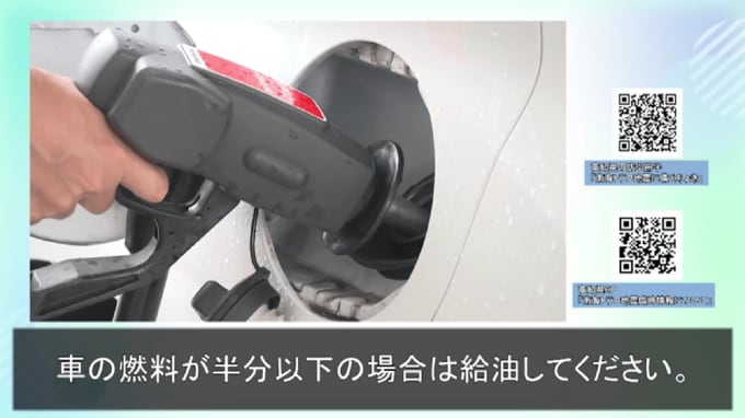 車の燃料が半分以下の場合は、給油してください。災害時は、緊急車両優先で燃料が給油されるため、一般車両の給油は制限されます。