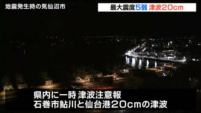 この地震で宮城県にも一時、津波注意報が出され、石巻市鮎川と仙台港でそれぞれ20cmの津波を観測しました。