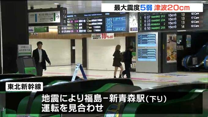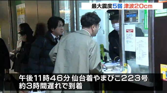 東北新幹線は、福島駅と新青森駅の間の下りで運転を見合わせ、午後11時46分仙台着のやまびこ223号は、約3時間遅れで到着しました。