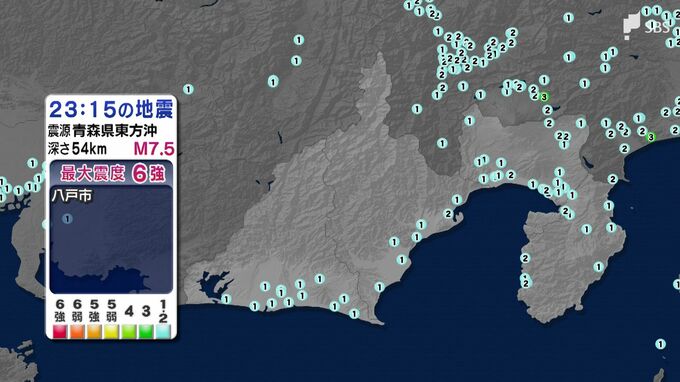 8日午後11時15分頃、青森県東方沖で発生した地震では、青森県八戸市で震度6強を観測しました。