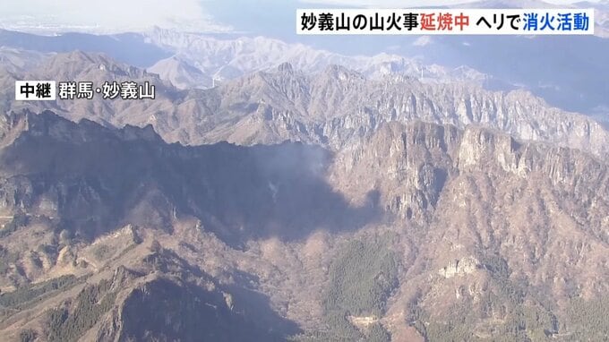 群馬県の妙義山の山火事は発生から丸1日以上が経ちました。けさ、消火活動が再開し、自衛隊のヘリコプターが上空から消火にあたっていますが、現在も延焼中です。