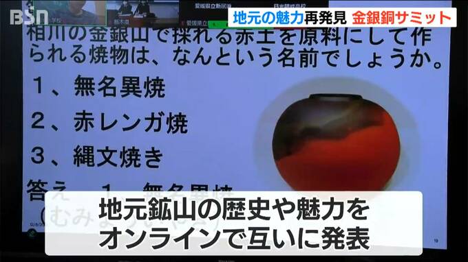 各学校が調べた地元の鉱山の歴史や地域の魅力などをオンラインを使って発表し、それぞれの地域への理解を深めました。