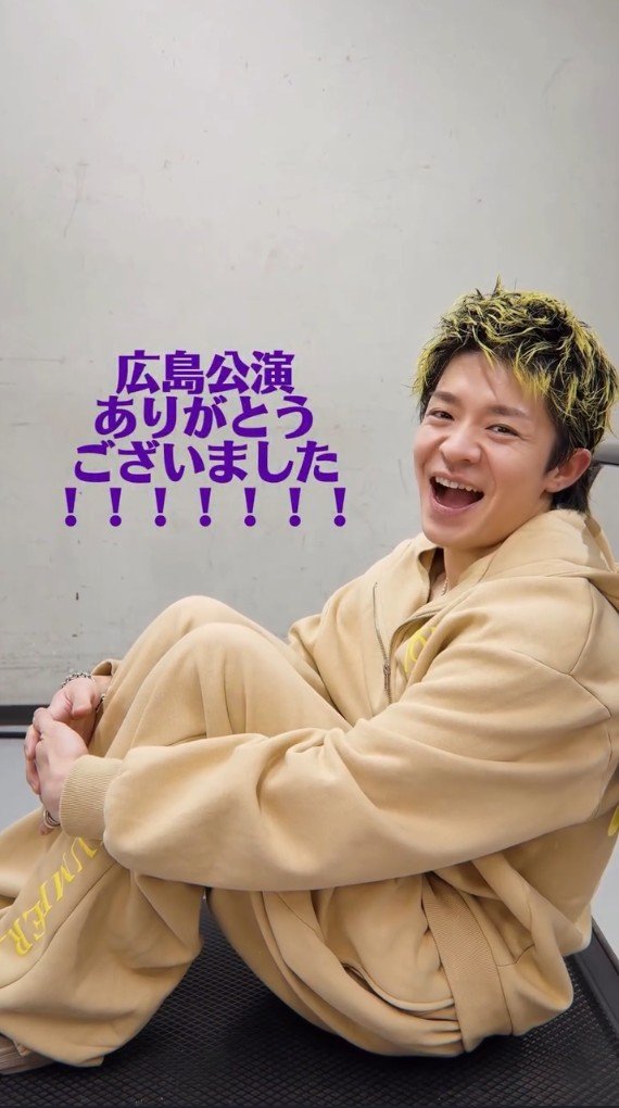 Number_iの岸優太さんがインスタグラムを更新。広島公演の終了を報告し、舞台裏の様子をユーモラスに表現した動画を投稿しました。