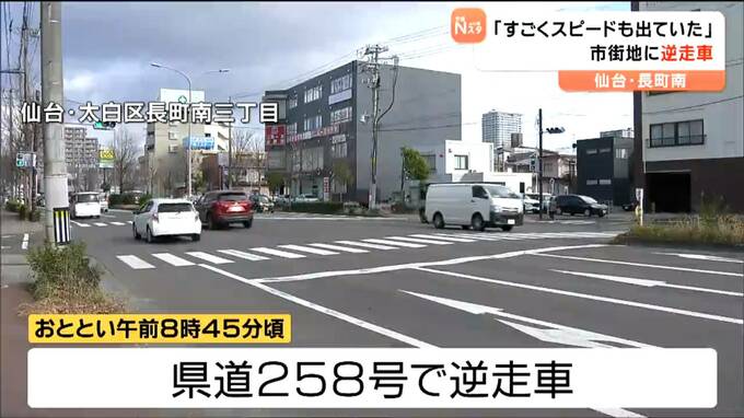 逆走車が現れたのは、7日午前8時45分頃、仙台市太白区長町南3丁目の県道258号です。目撃した女性は、夫が運転する車の助手席にいたといいます。
