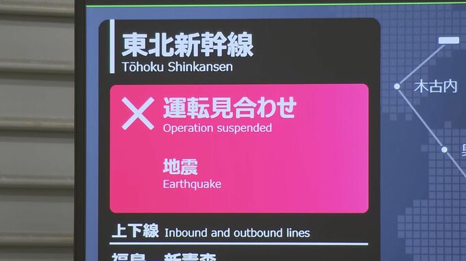 地震の影響で、東北新幹線は、一部の区間で運転を見合わせていましたが、9日午後3時半すぎ、全線で運転を再開しました。また、福島第一原発では、処理水の放出が中断されました。東京電力によりますと、福島第一原発で新たな異常は確認されていないということです。