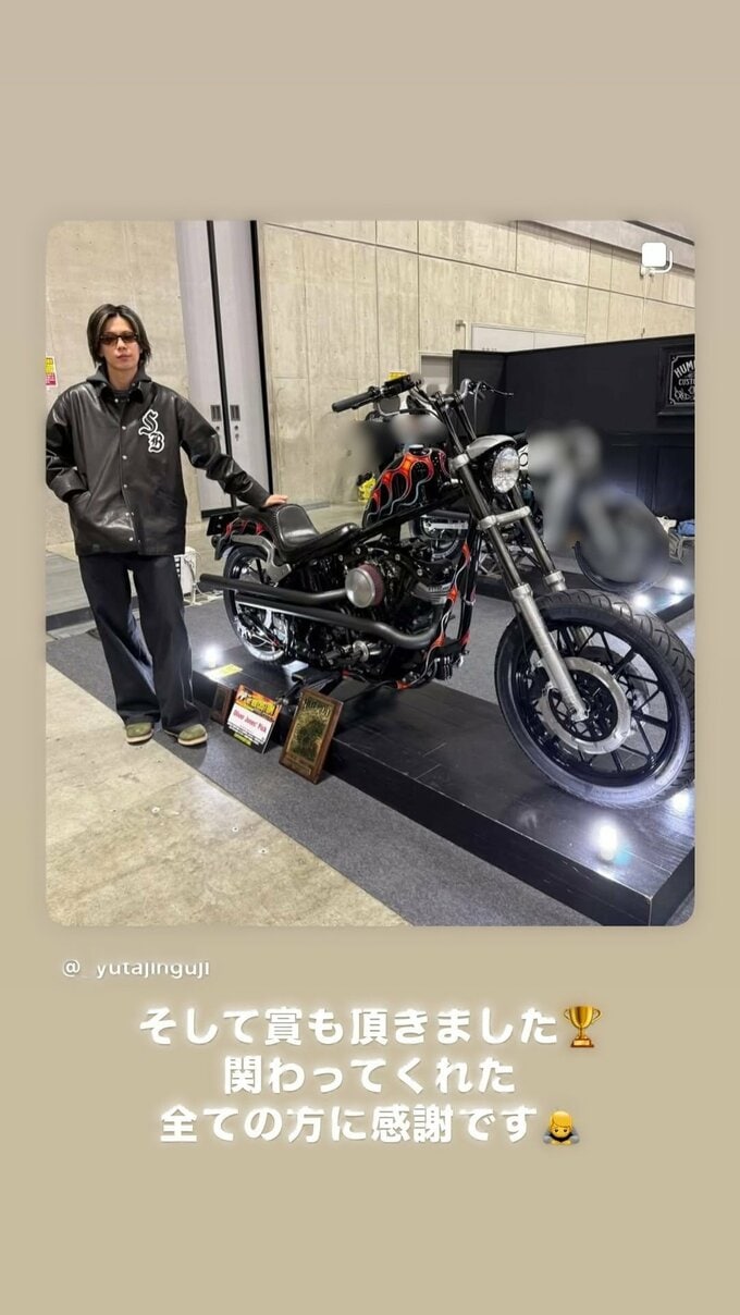 ストーリーズでは「そして賞も頂きました」と報告。ファンのSNS投稿によれば、神宮寺さんの愛車は「CHOPPER JOURNAL MAGAZINE’S PICK」「OLIVER JONES’ PICK」という2つの大きな盾と「COOL!」という小さな盾を車体の側に飾られていたようで、大きな注目を集めていた模様です。