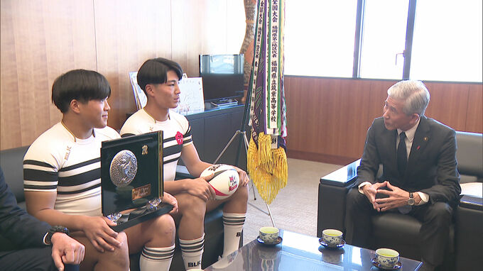 花園への切符をつかんだ筑紫高校のラグビー部が筑紫野市役所を訪れ、意気込みを語りました。