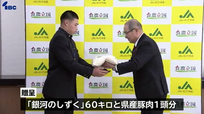 盛岡工業ラグビー部に県産食材を贈ったのは、JA全農いわてと、盛岡市などを営業地域とするJAいわて中央です。