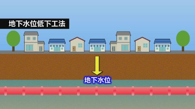 今回検証するのは、地下に集水管を設置し、地下水をポンプでくみ上げることで、一帯の水位を下げて地盤の強度を高める「地下水位低下工法」。
