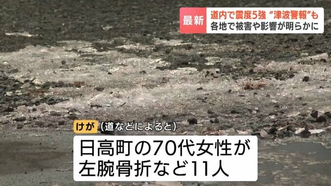 北海道などによりますと、日高町の70代の女性が避難中に凍った路面で転倒し、左腕の骨を折るなど、これまでに11人がけがをしました。