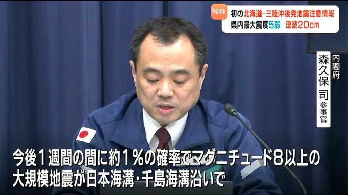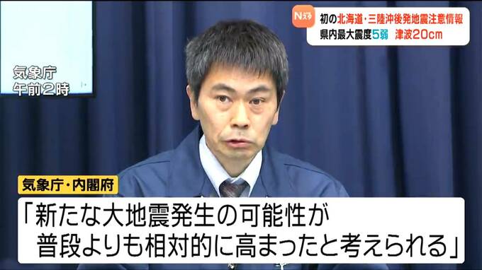 気象庁と内閣府は、新たな大地震発生の可能性が普段よりも相対的に高まったと考えられるとして「北海道・三陸沖後発地震注意情報」を初めて発表しました。