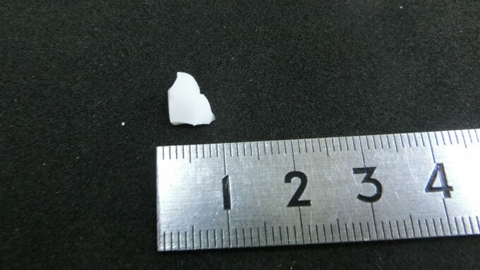 提供された親子煮に、縦約1センチ・横約0.7センチ・厚さ約1ミリの磁器の破片が 混入しているのが見つかりました。