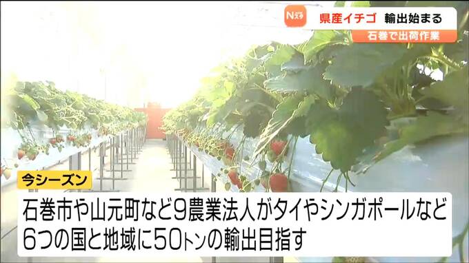 宮城県内産のイチゴの輸出が、今シーズンも始まり、石巻市などのハウスでは出荷作業が行なわれています。
