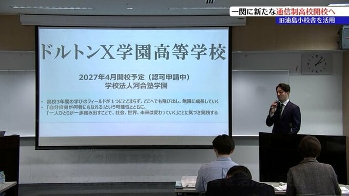 学習塾などを経営する河合塾グループが、2027年、岩手県一関市に新たな通信制高校を開校することになり、9日記者発表が行われました。