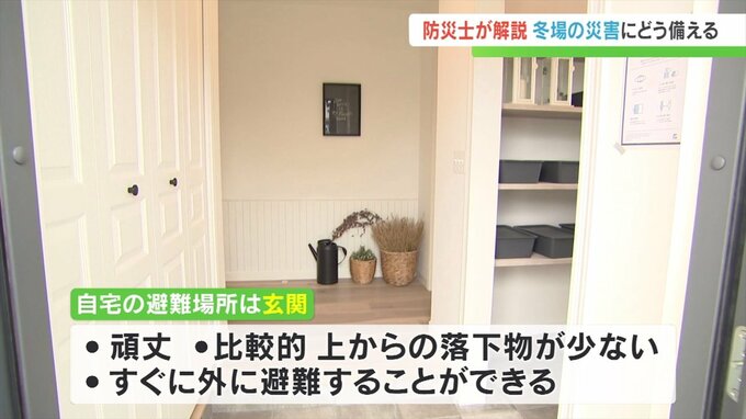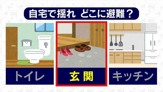 まず一つ目は、玄関というのは比較的頑丈に作られているということがあります。あと比較的上からの落下物が少ないんです。というのと状況が落ち着いたらすぐに外に避難することができるという点があります。